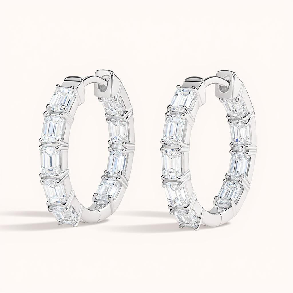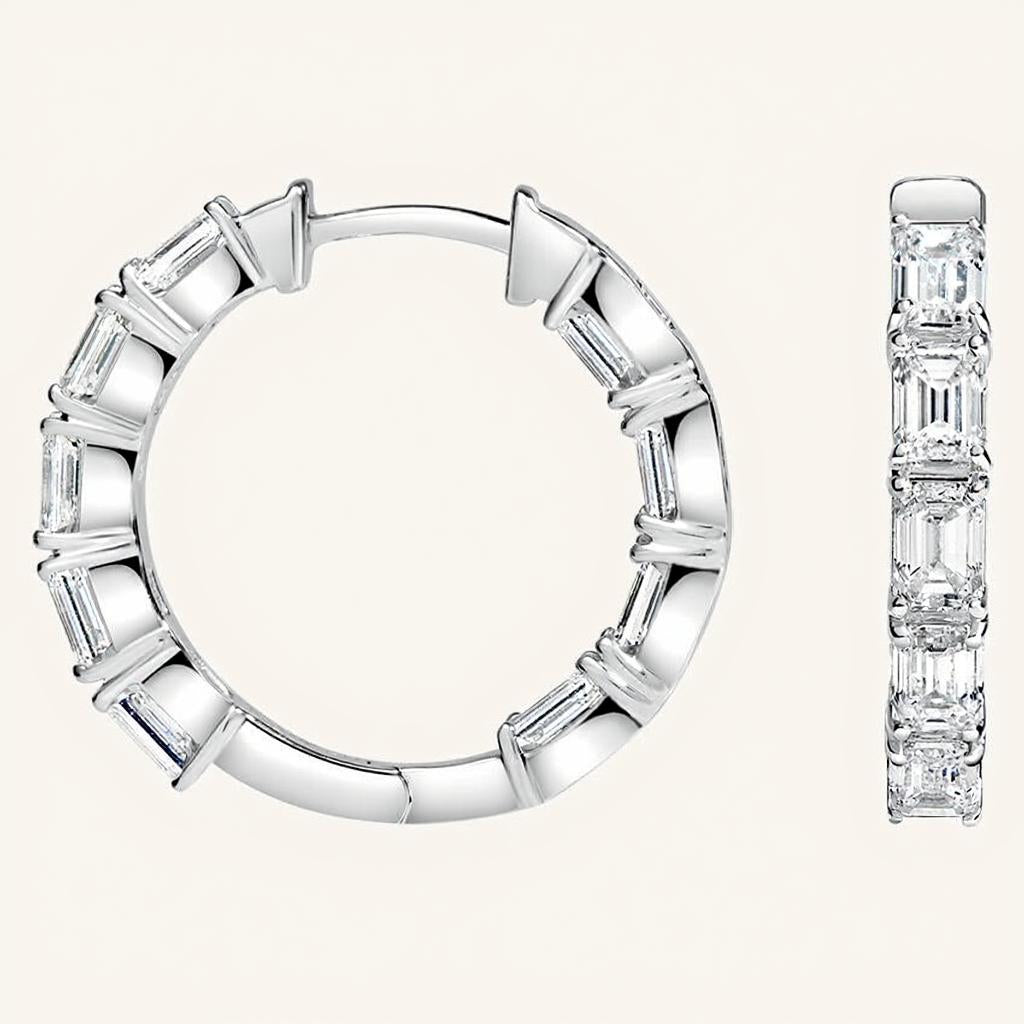 These emerald-cut lab-grown diamond hoop earrings are designed for understated luxury. Expertly crafted in 14K gold, their clean geometric lines and mesmerizing brilliance elevate any look—from day to night. A modern twist on a classic, these hoops offer ethical sophistication with every wear.