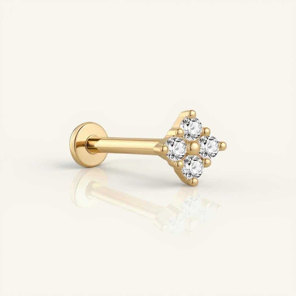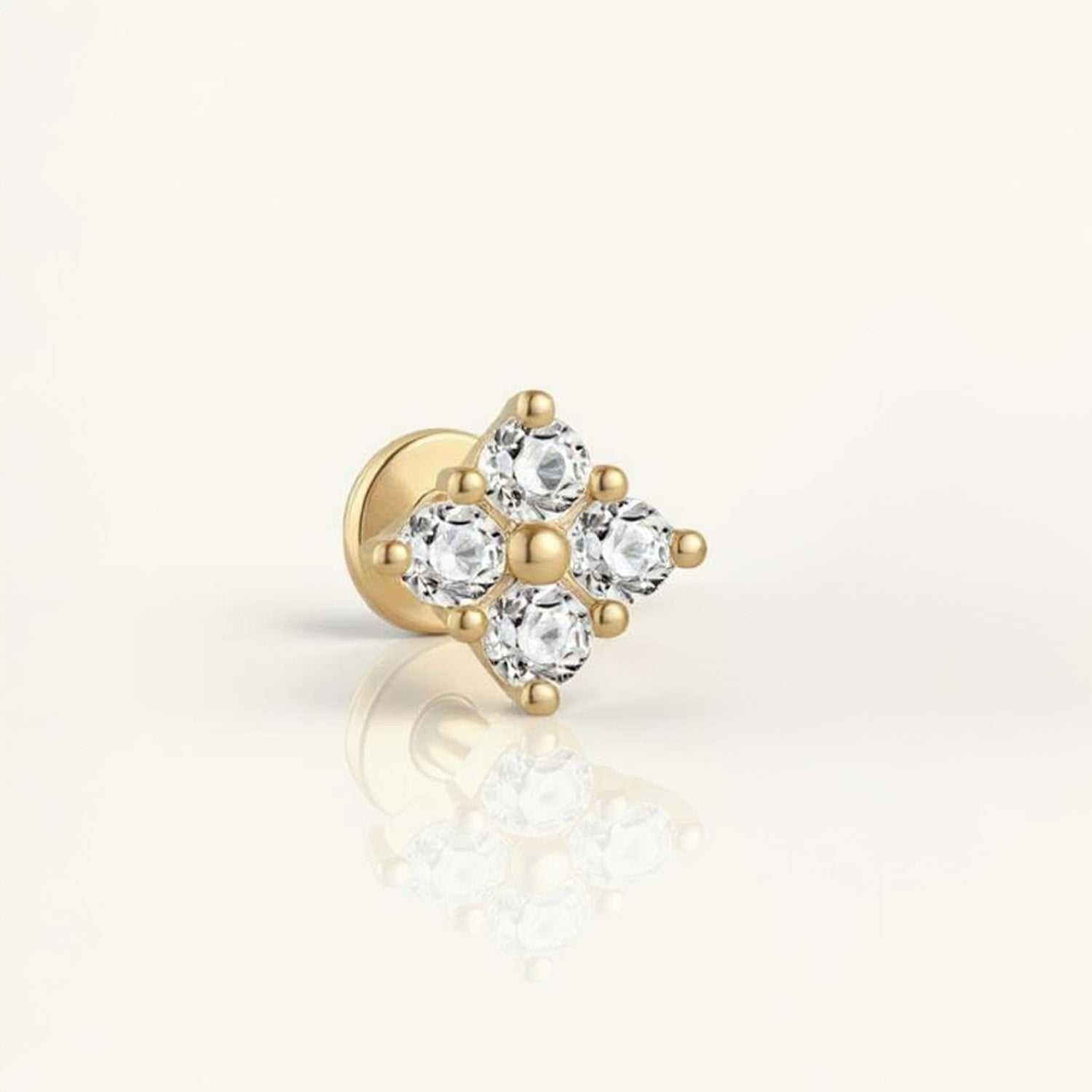 Lab Diamond Clover Flat Back Stud Earring