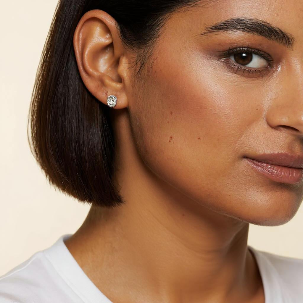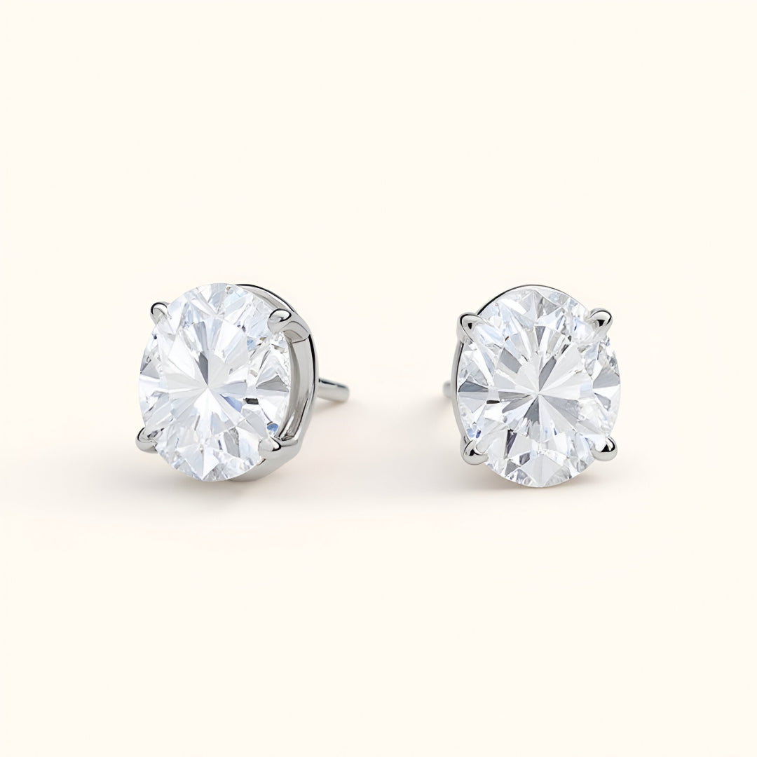 These exquisite oval lab-grown diamond stud earrings (2 carat total weight, 1 carat each) offer a sophisticated twist on a classic silhouette. Set in gleaming 14K gold, their elongated oval cuts create the illusion of greater size while delivering exceptional fire and sparkle. Perfectly proportioned for both everyday elegance and special occasions, the secure four-prong setting showcases each diamond beautifully while ensuring lasting wear.